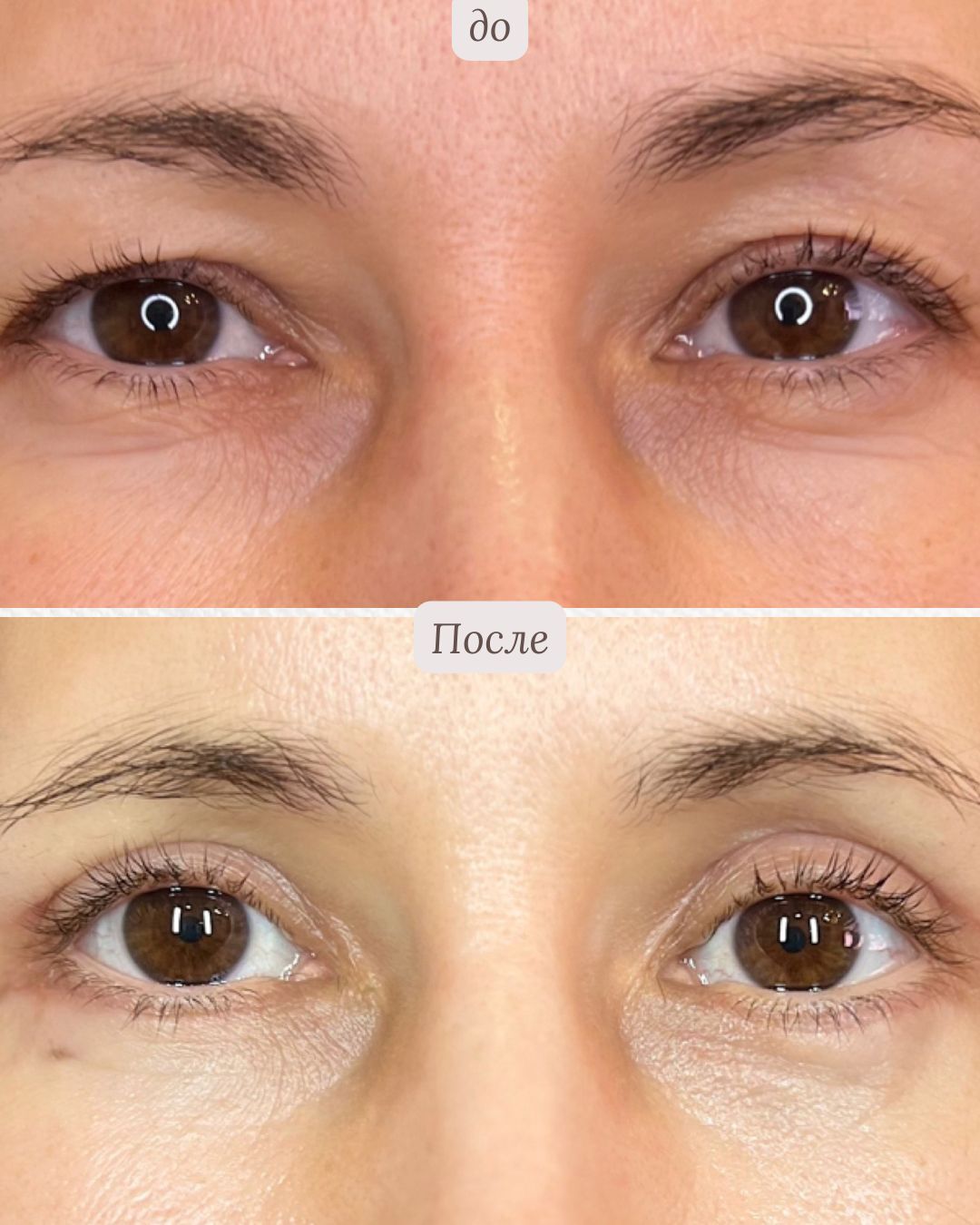 Убираю нависание кожи, «мешки» и грыжи. Возвращаю взгляду свежесть и открытость — без эффекта «удивлённых» глаз и следов операции.